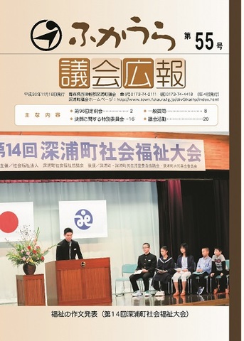 第55号表紙「福祉の作文発表(第14回深浦町社会福祉大会)」