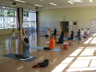 講師に神馬陽夏氏(ハッピーヨガインストラクター)を招いて、心と体のバランスを整えたい方(初級編)からシェイプアップやアクティブに体を動かしたい方(中級編)まで、受講者に合わせた「ヨガ教室」を開催しています。応募者16名の人気の教室となっています。