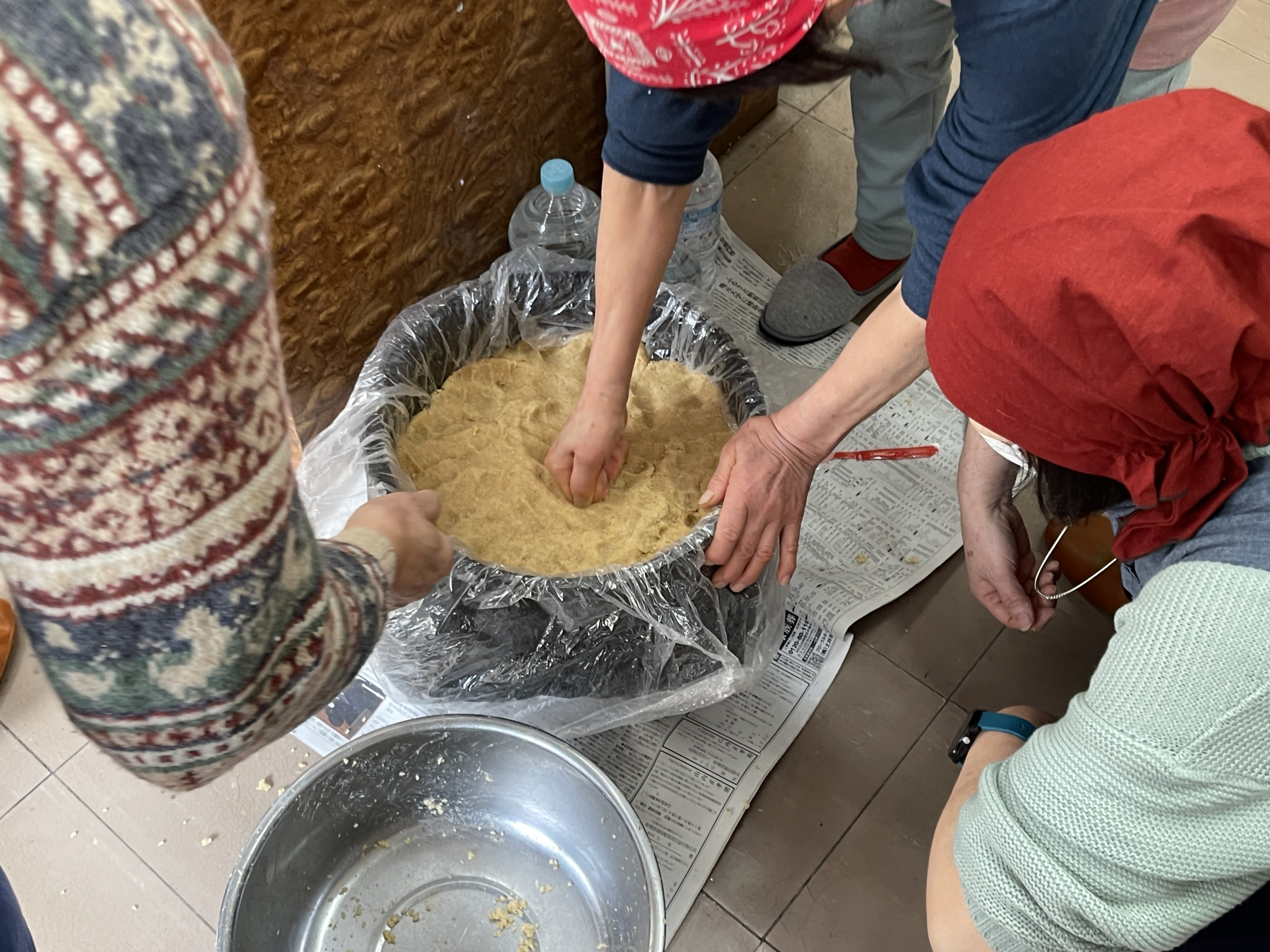 令和8年2月25日(水)に公民館講座『自然の恵みを味わう「手前味噌づくり教室」』を食生活改善推進員の大高さんと藤田さんを講師に迎えて開催しました。